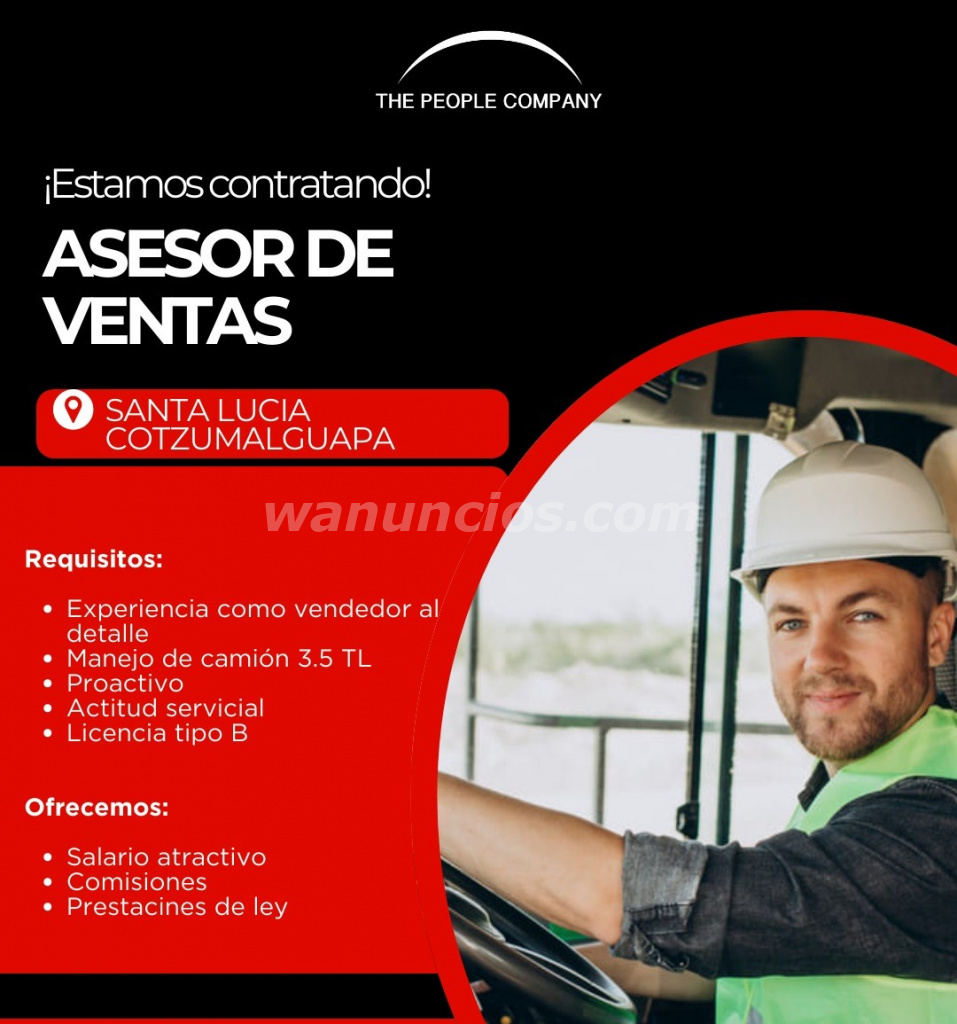 ASESOR DE VENTAS PARA EL AREA DE SANTA LUCIA COTZUMALGUAPA (SANTA LUCIA COTZUMALGUAPA)